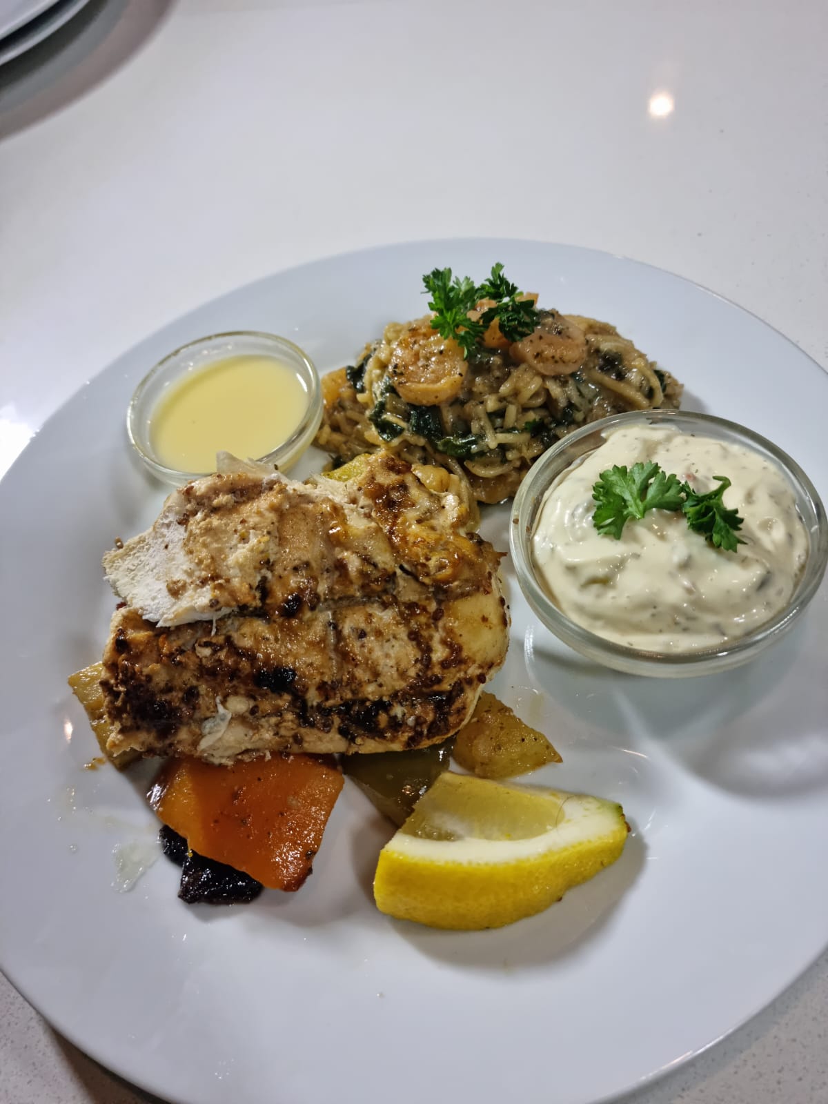 Love making food at my little piece of heaven, Dwarskersbos, West Coast. Tonight we had fresh Kabeljou (with a FDW Craft Spices special sauce) on a bed of roast veggies. On the side we made Prawn, Spinach and Feta with egg noodle adding a home made lemon butter sauce with white wine. And then we made a homemade tartar sauce for added taste 😁 FDW Craft Spices, man you make life feel good!! ❤️